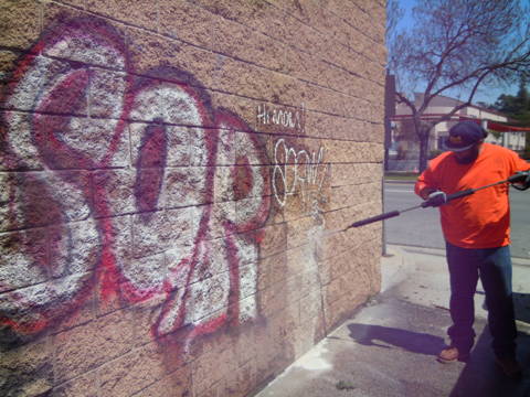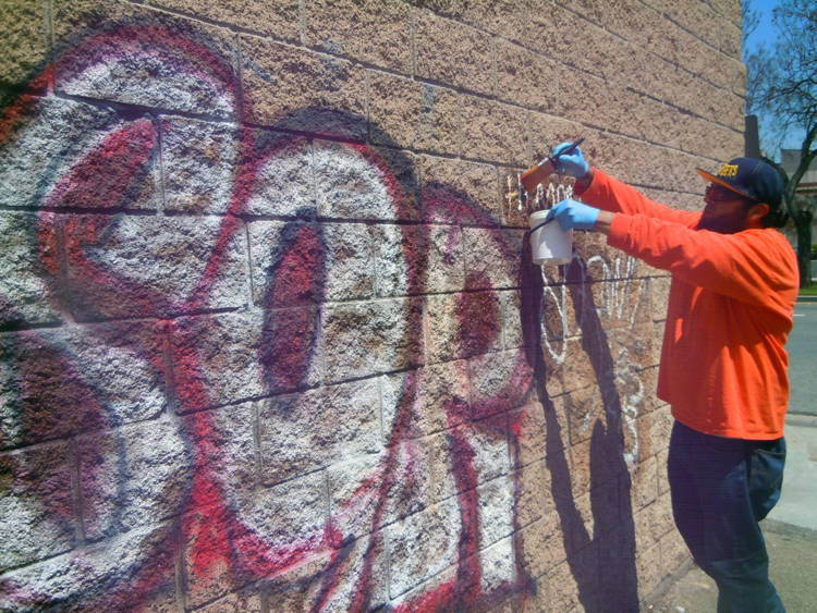 City of Glendale CA removes unsightly spray paint graffiti from split