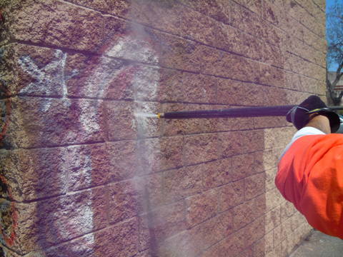 Graffiti Removal from brick using Bare Brick, Stone & Masonry Graffiti Remover