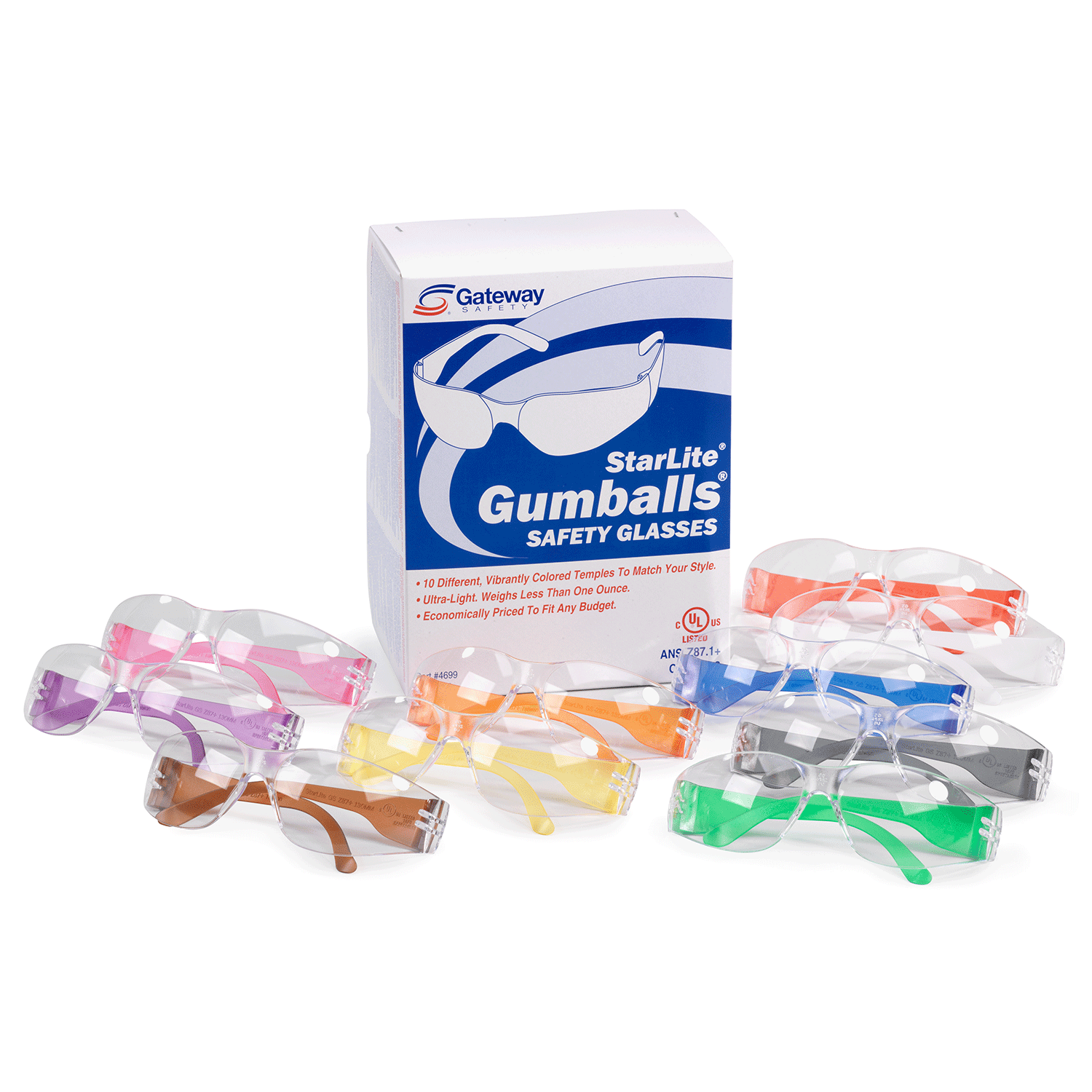 Contains 10 different, comfortable vibrantly colored translucent temples to match your style or mood.